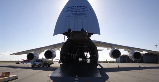 A primeira carga, um helicóptero modelo EC225 da empresa Omni Taxi Aéreo, avaliado em aproximadamente US$ 21 milhões, partiu da cidade de Prestwik, na Escócia, no dia 2 de outubro com destino ao aeroporto de Cabo Frio, no Rio de Janeiro, onde foi descarregado dois dias depois. A operação, que durou em torno de 1 hora, envolveu 12 pessoas.